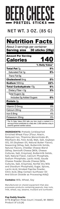 Inspired by the classic pub dip, these pretzels bring a bold cheddar flavor with a smooth, tangy finish—no actual beer needed. It’s that rich, craveable cheese taste you remember from soft pretzels at the bowling alley or ballgame. Crunchy, comforting, and totally satisfying.